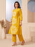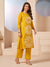Comfortable Cotton Floral Thread Work Mustard V- Neck Kurta Set for Women - Zola