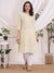 lemon Paisley Embroidered cotton Lucknowi Chikankari Kurta For Women - ZOLA