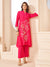 Comfortable Silk Floral Thread Work Pink Mandarin - V Kurta Set for Women - Zola