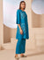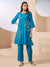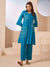 Shop Silk Floral Embroidered Aqua Round Neck Kurta Set for Women - Zola