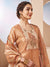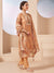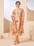 Elegant Silk Floral Print Woven & Hand Embroidery touch up Beige Round Neck 3 pcs Suit Set for Women